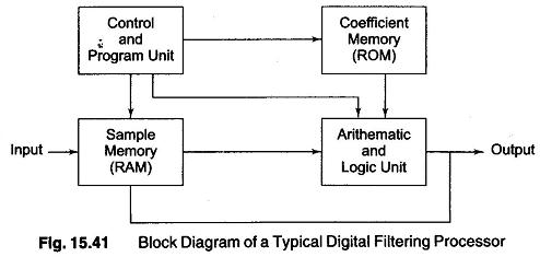 A general block diagram of a digital filtering processor is presented in Fig. 15.41. It is composed of the following.
