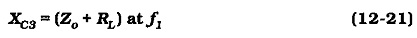 Normally, the largest capacitor in any circuit is employed to determine the circuit low 3 dB frequency (f1). Where two capacitors are likely to be equally large, they are both used to set f1. The largest capacitor is always the one in series with the lowest resistance. In the circuit in Fig. 12-26, the external load resistance is likely to be the smallest resistance in series with a capacitor. Consequently, C3 is calculated from,
