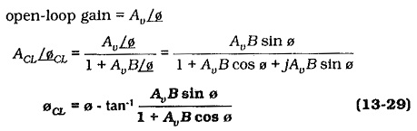To investigate the Effects of Negative Feedback in Amplifiers phase shift assume that the open-loop gain has a phase shift angle of ø, and that the closed-loop phase shift is øCL. Then,