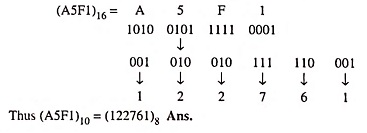 Hexadecimal numbers can be converted to equivalent octal numbers and octal numbers can be converted to equivalent hex numbers by converting the hex/octal number to equivalent binary and then to octal/hex respectively. The procedure is illustrated by the following example.