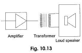 For example, the input impedance of a loudspeaker is usually very small, say 3 to 12 Q, for connecting directly to an amplifier. The transformer proper turns ratio can be placed between the output of the amplifier and the input of the loudspeaker to match the impedances as shown in Fig. 10.13.