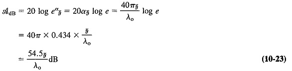 where AdBÂ is the ratio, expressed in decibels, of the input voltage to the output voltage from a waveguide operated substantially below cutoff.