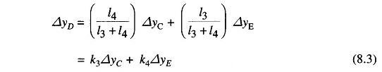 It can be verified from the schematic diagram that a positive movement ΔyD causes negative (upward) movement ΔyE accounting for the negative sign used in Eq. (8.4).