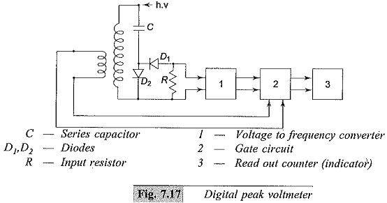 A digital peak reading meter for voltage measurements is shown in Fig. 7.17.