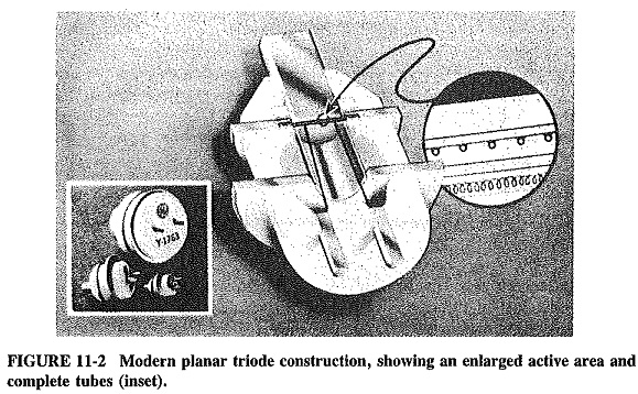 Planar Triode Construction – A short transit time is essential if grid loss and noise are to be minimized, as is the reduction of internal capacitances and inductances. Also, since coaxial resonant lines and cavities are used as tuned circuits at these frequencies, tubes should be built so as to connect to such lines or resonators directly.