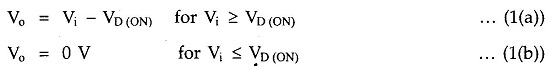 Therefore, above this threshold we have Vo = Vi – VD(ON) ≈ Vi – 0.7 V and below threshold Vo = 0V i.e.