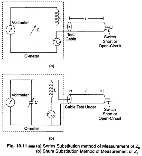 Figure 10.11(a) shows a series substitution method for determining the characteristic impedance of a transmission line and Fig. 10.11(b) shows a shunt or parallel method of substitution for the same purpose.