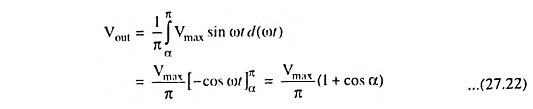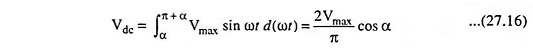 (a) Rectification Mode: For firing angle α less than 90°, the input ac supply is rectified by the circuit. The average value of voltage at the dc terminals is positive in the range from 0° to 90°, as illustrated in Fig. 27.16 (c) . In this mode, the power is transferred from the source to the load.