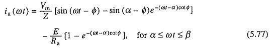 Constant K1 can be evaluated subjecting Eq. (5.74) to the initial condition ia(α) = 0. Substituting value of K1 so obtained in Eq. (5.74) yields