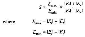 The ratio of the maximum to the minimum value of voltages (or currents) in the standing wave pattern is termed the standing wave ratio.