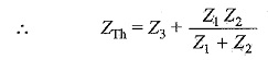 The impedance between points A and B with the source replaced by short circuit is the Thevenin equivalent impedance. In Fig. 7.20, the impedance from A to B is Z3 in series with the parallel combination of Z1 and Z2.