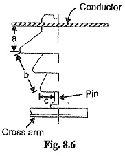 Causes of Insulator Failure: Insulators are required to withstand both mechanical and electrical stresses. The latter type is primarily due to line voltage and may cause the breakdown of the insulator. The electrical breakdown of the insulator can occur either by flash-over or puncture. In flash over, an arc occurs between the line conductor and insulator pin(i.e., earth) and the discharge jumps across the air gaps, following shortest distance. Fig. 8.6 shows the arcing distance (i.e. a + b + c) for the insulator. In case of flash-over, the insulator will continue to act in its proper capacity unless extreme heat produced by the arc destroys the Insulator.