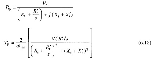 Again, equivalent circuits of Fig. 6.1 are applicable when s is replaced by (2 — s) or sn, and V are replaced by Vn. Proceeding as in Sec. 6.1, following expressions are obtained for rotor current and torque: