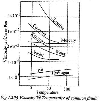 Variation of Viscosity Unit with respect o temperature for some common fluids are given in fig 1.2(b).